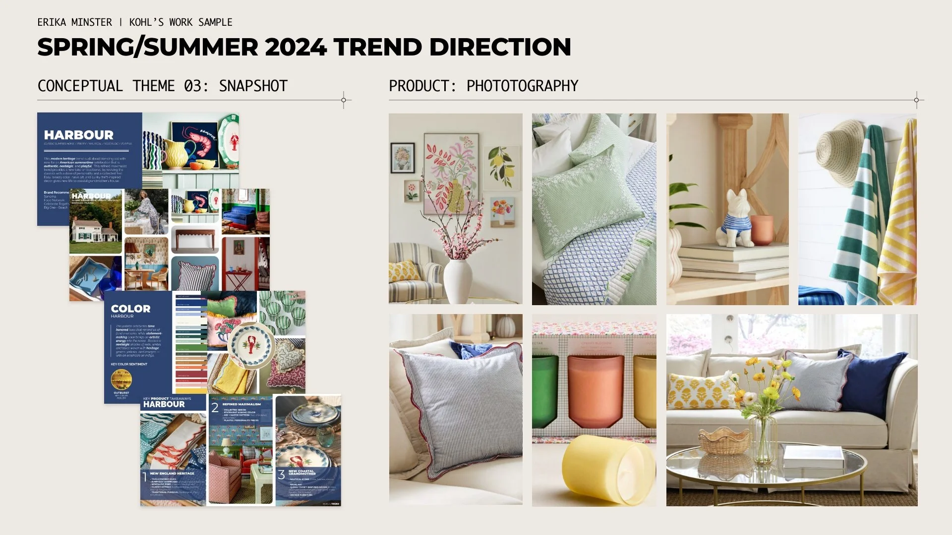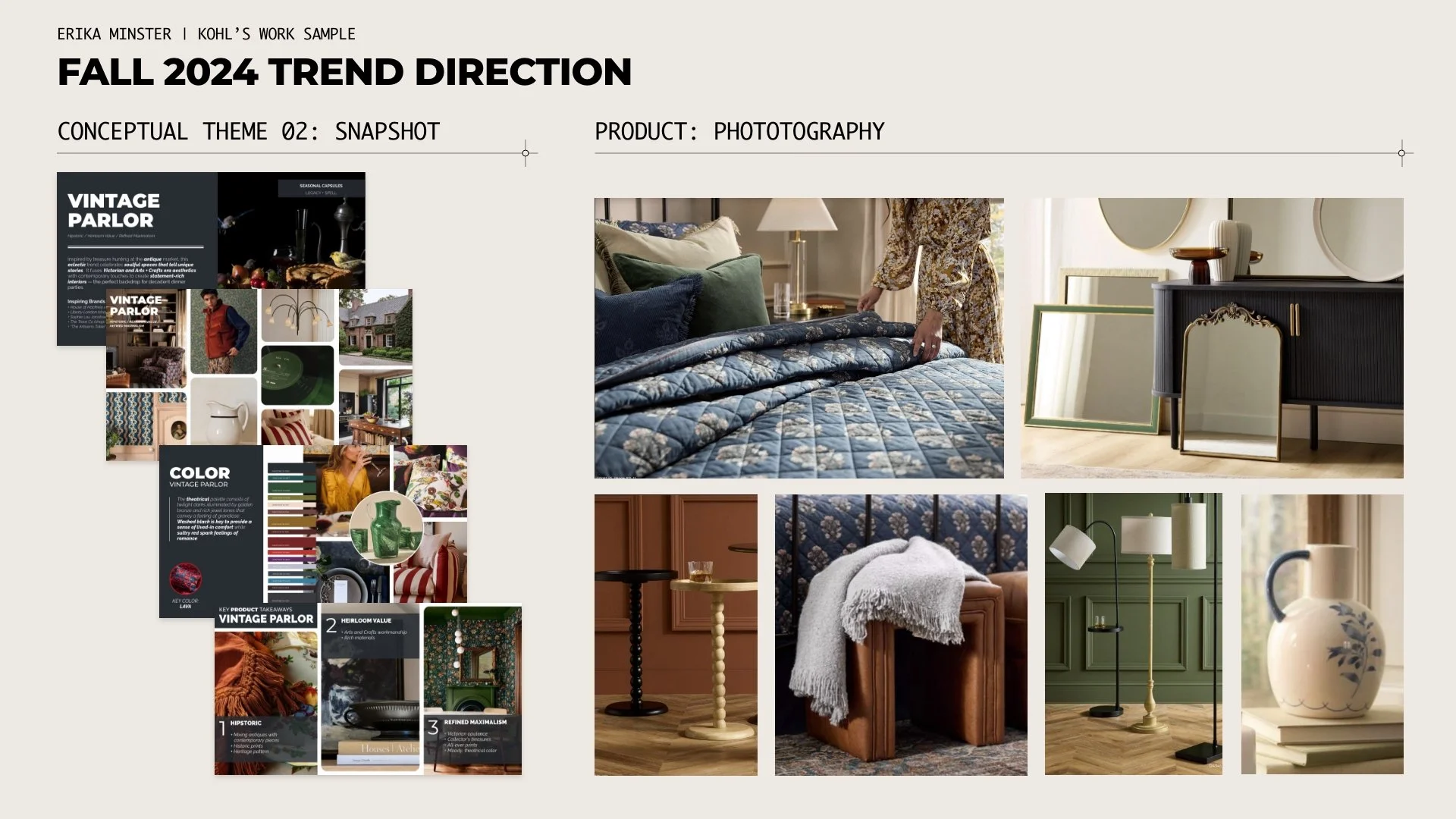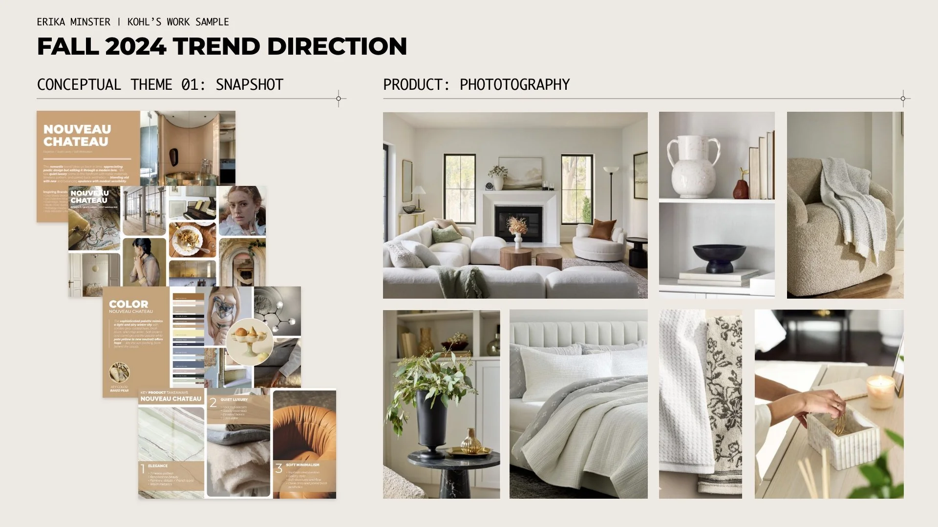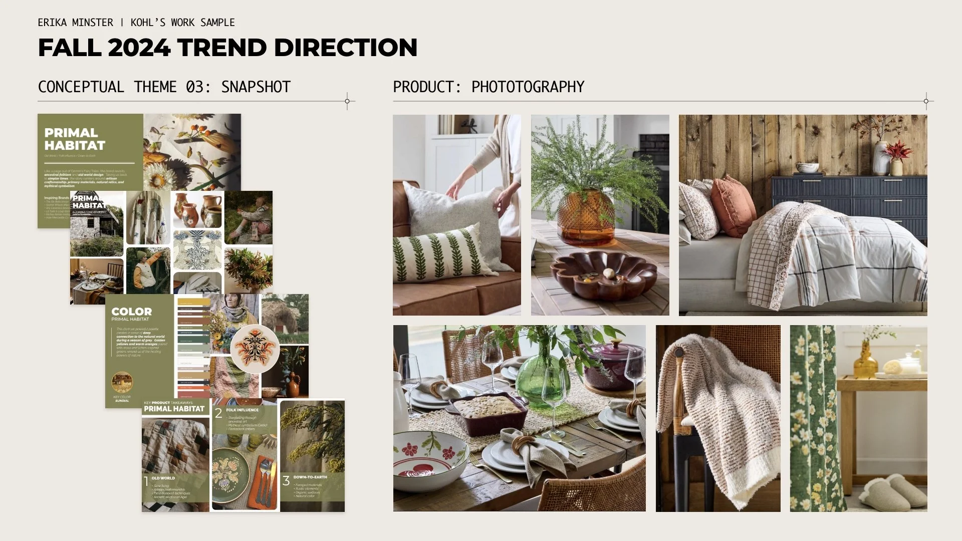 Below is a sampling of Home trend decks I’ve created for Kohl’s and how they were translated by the design teams into art and product.